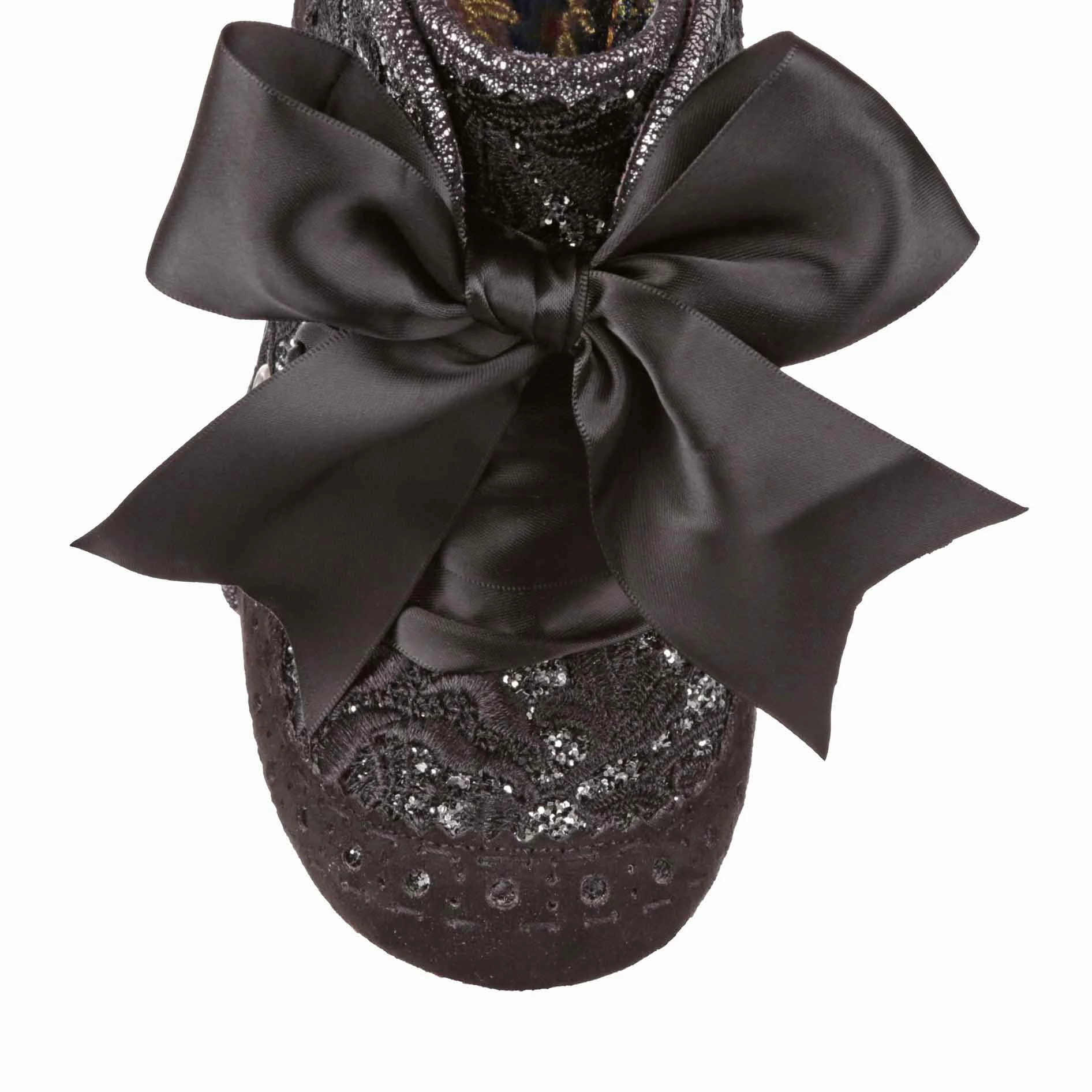 Dainty, demure and dreamy – it’s Abigail’s Party! These fan favourite boots have been reimagined this season in spectacular metallic with a gothic black lace overlay, paired with luxurious dark fabrics and glitter! Tie up the stunning velvet laces and go have your own dark fairytale adventure!