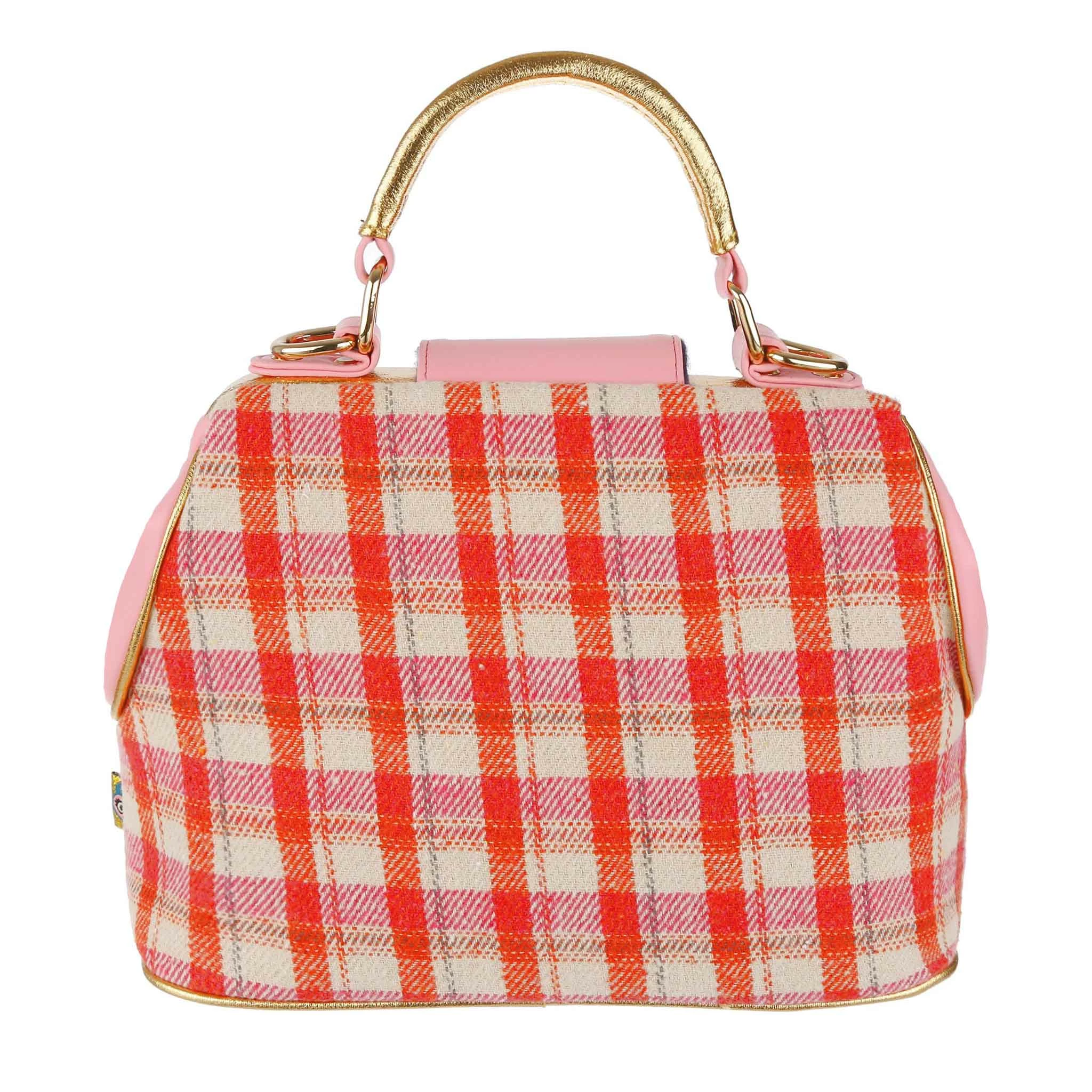 Looking for something irresistibly delicious? This doctors-style bag opens out wide to fit all your goodies inside whilst being oh so adorable, studded with sweet cherries over a classic pink and red tartan. The cherry on top of it all is the large pair that sit on the magnetic fastening strap! Around the edges is layered red reptile texture fabric finished with gold piping and a matching carry handle.