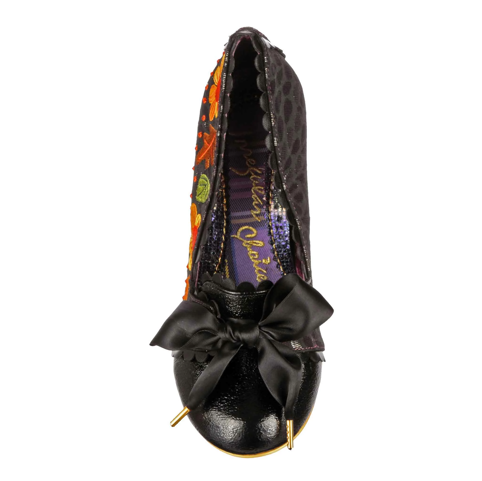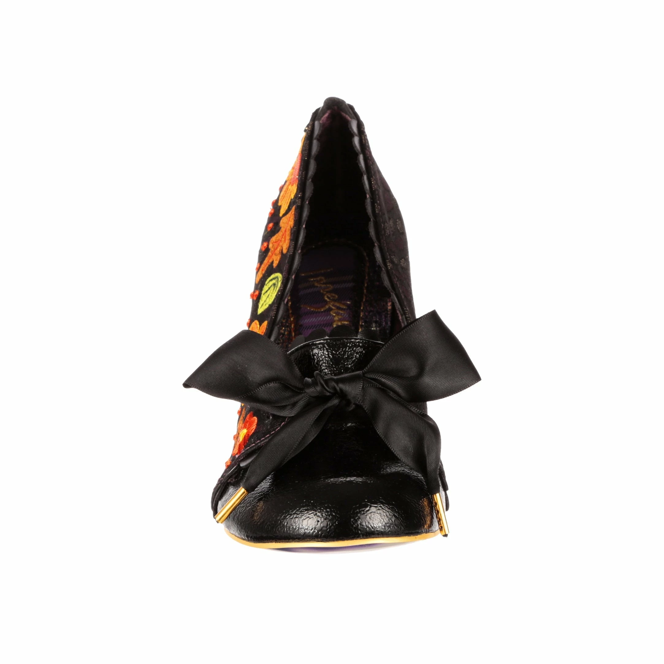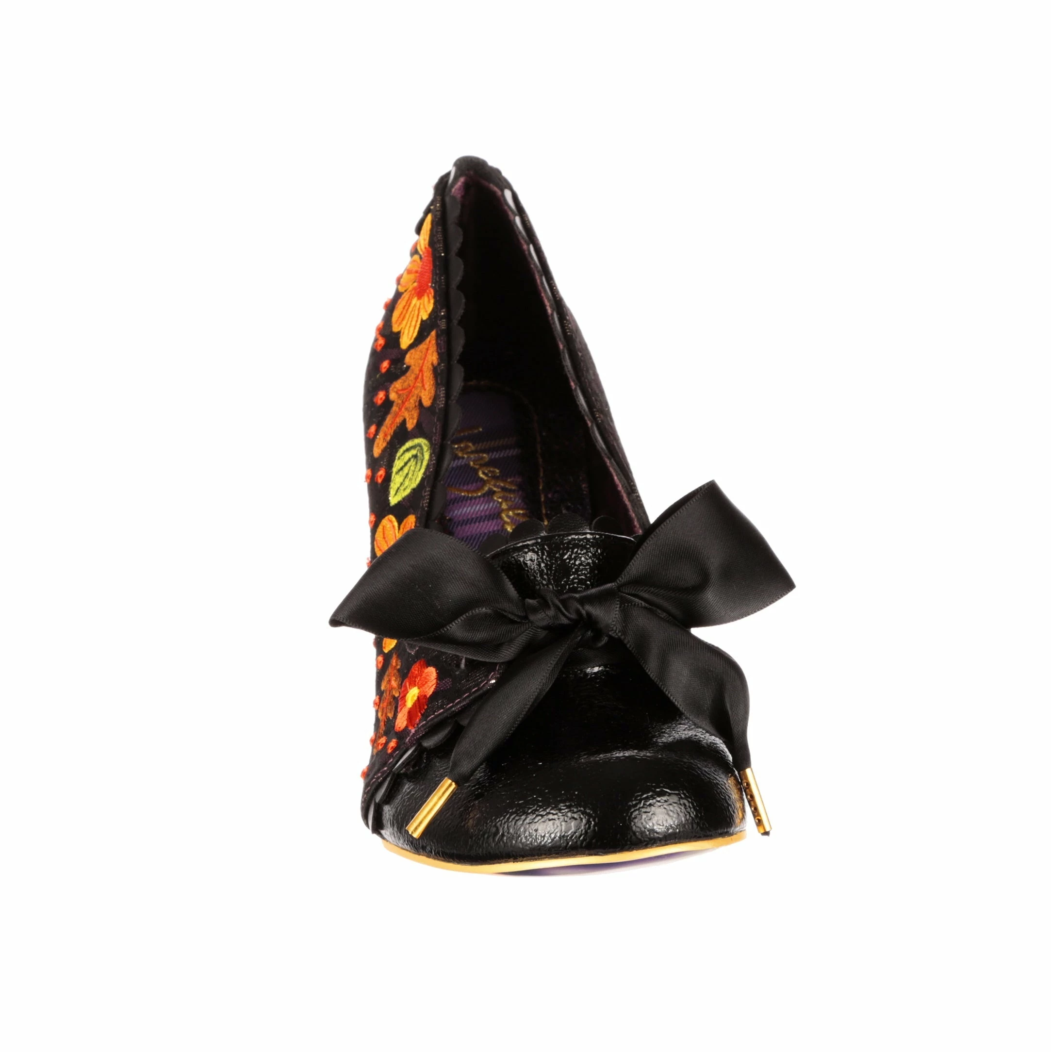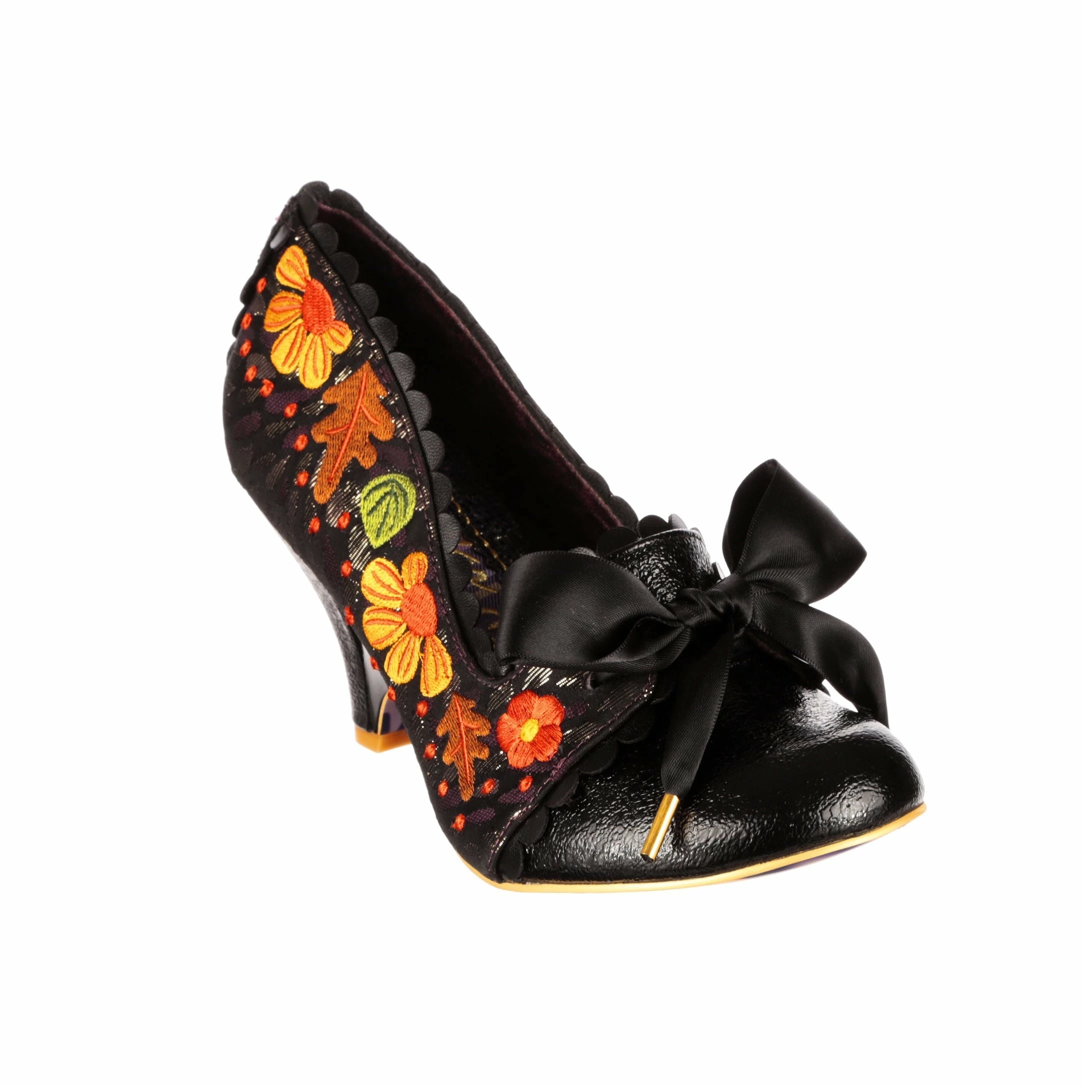 Ring ring… it’s autumn calling! Welcome fall in style with these curved mid heels, complete with autumnal leaves embroidered on the side leading to a black ribbon bow, these slip on shoes are smart and sleek!