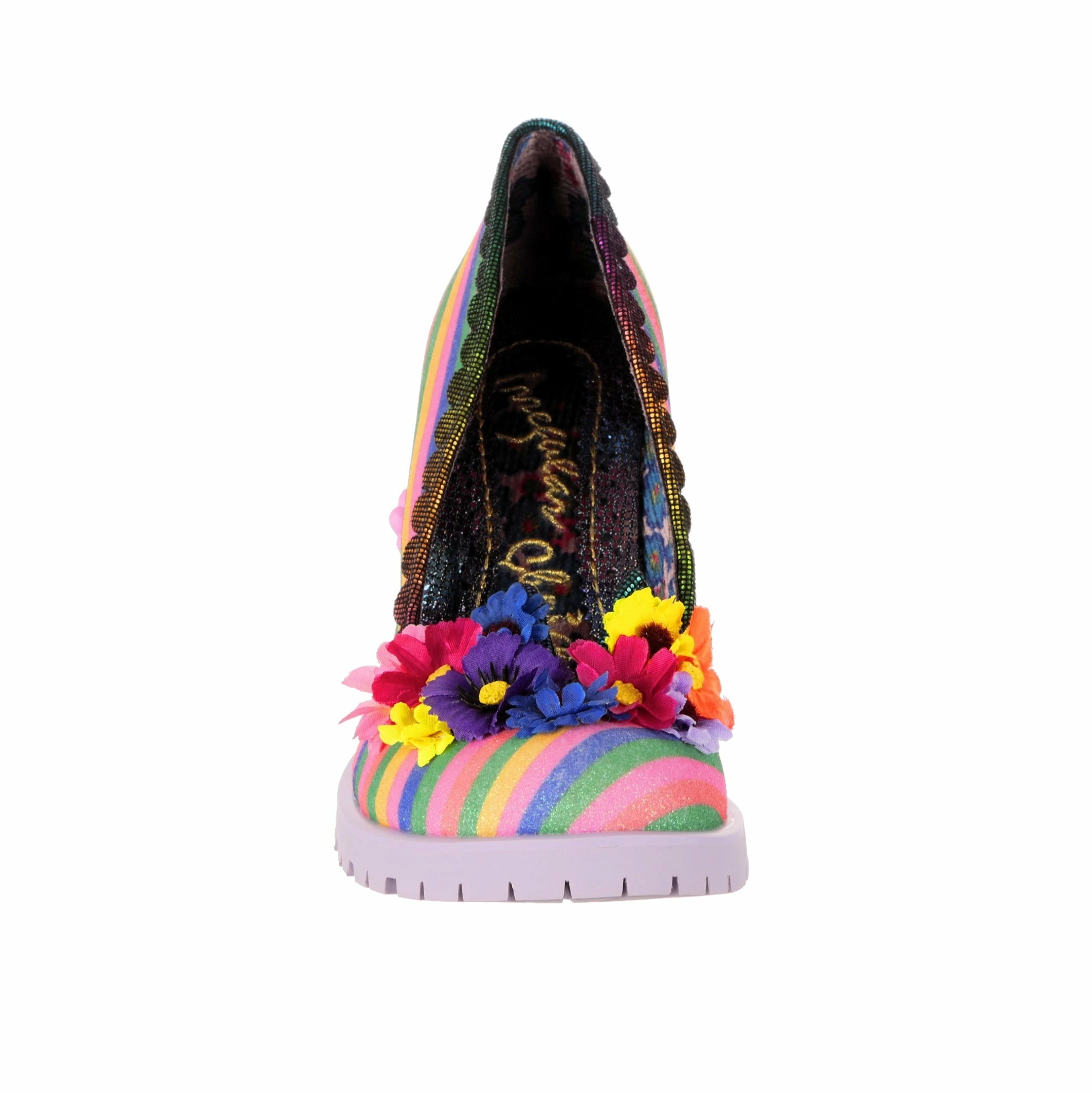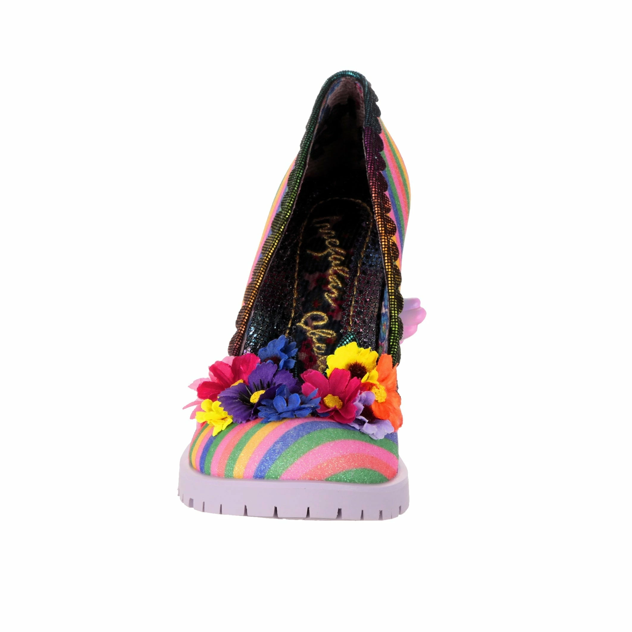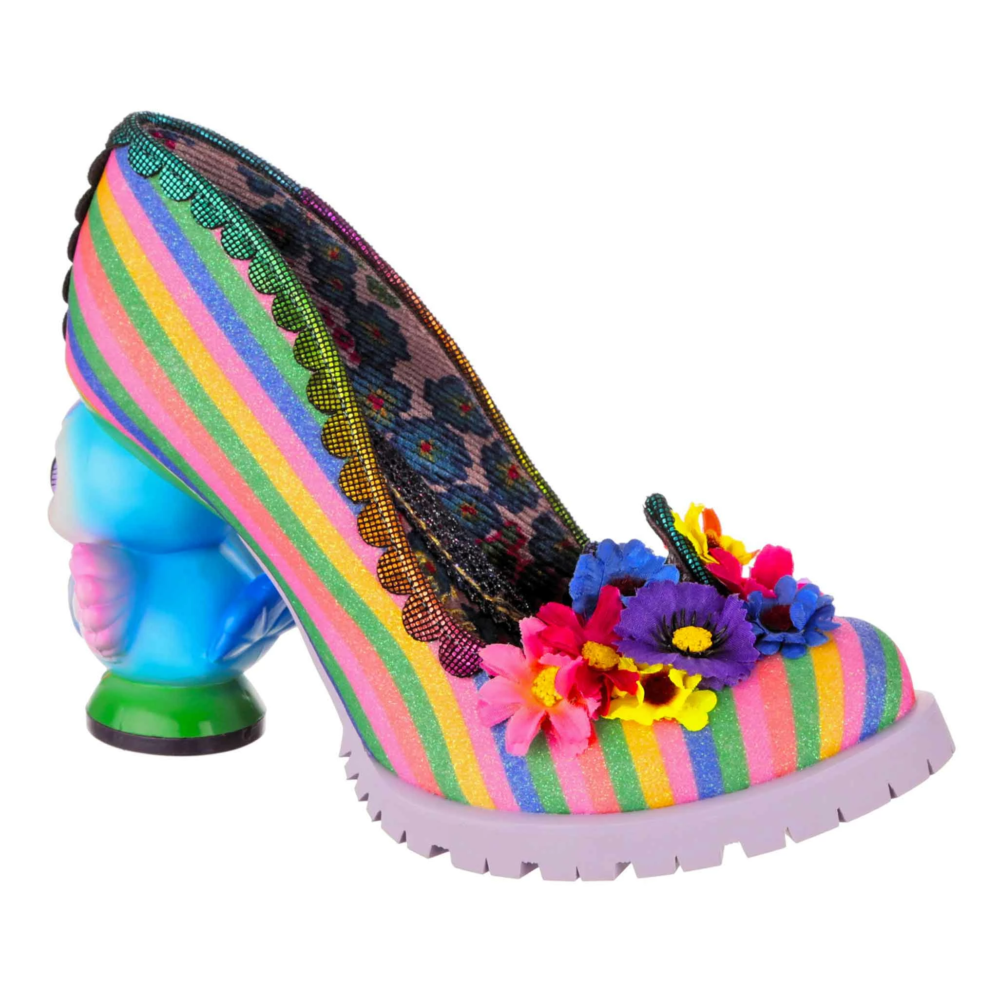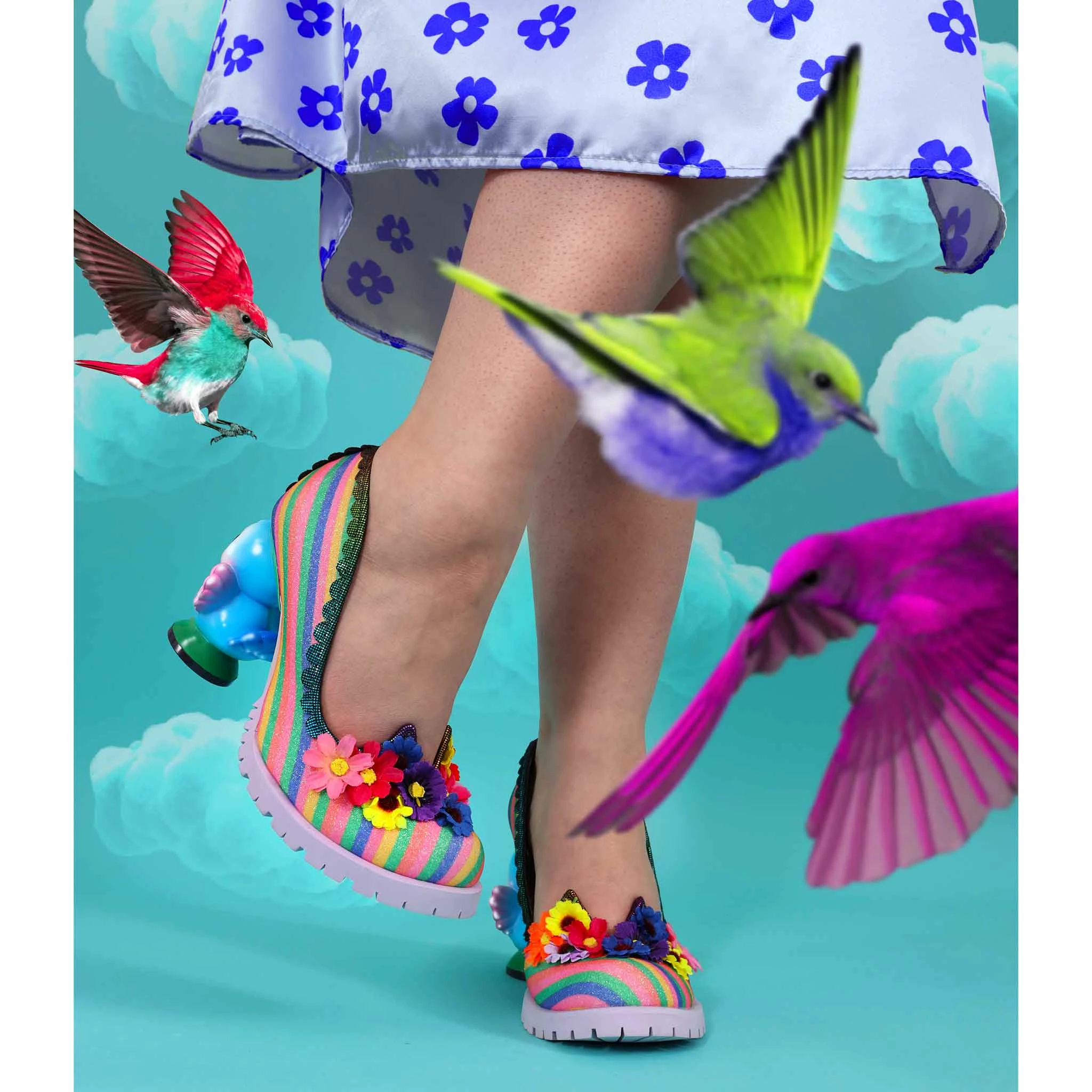A little birdie told me… that you need a new pair of heels! These gorgeous rockabilly style pumps are too cute – featuring a kitsch bluebird character heel. Feel sweet in candy-striped glitter in shades of green, pink, yellow, and blue – matching the bright flowers which decorate the toe. Grab them before they fly away!