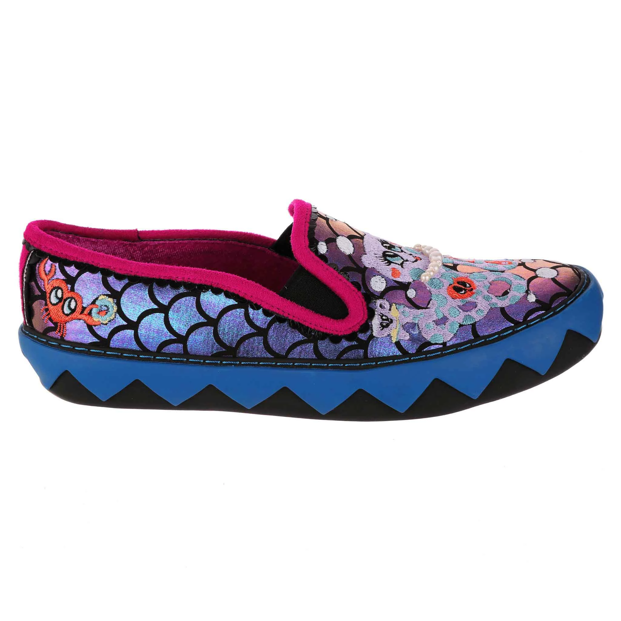 These shoes were mer-made for you! Gorgeous purple ombre slip on trainers are detailed with mermaid scales and embroidered with some underwater friends! Contrasted with bright cerise pink piping and a blue and black sole, these iridescent beauties will go with so many outfits! Quick, grab them now before they swim away!