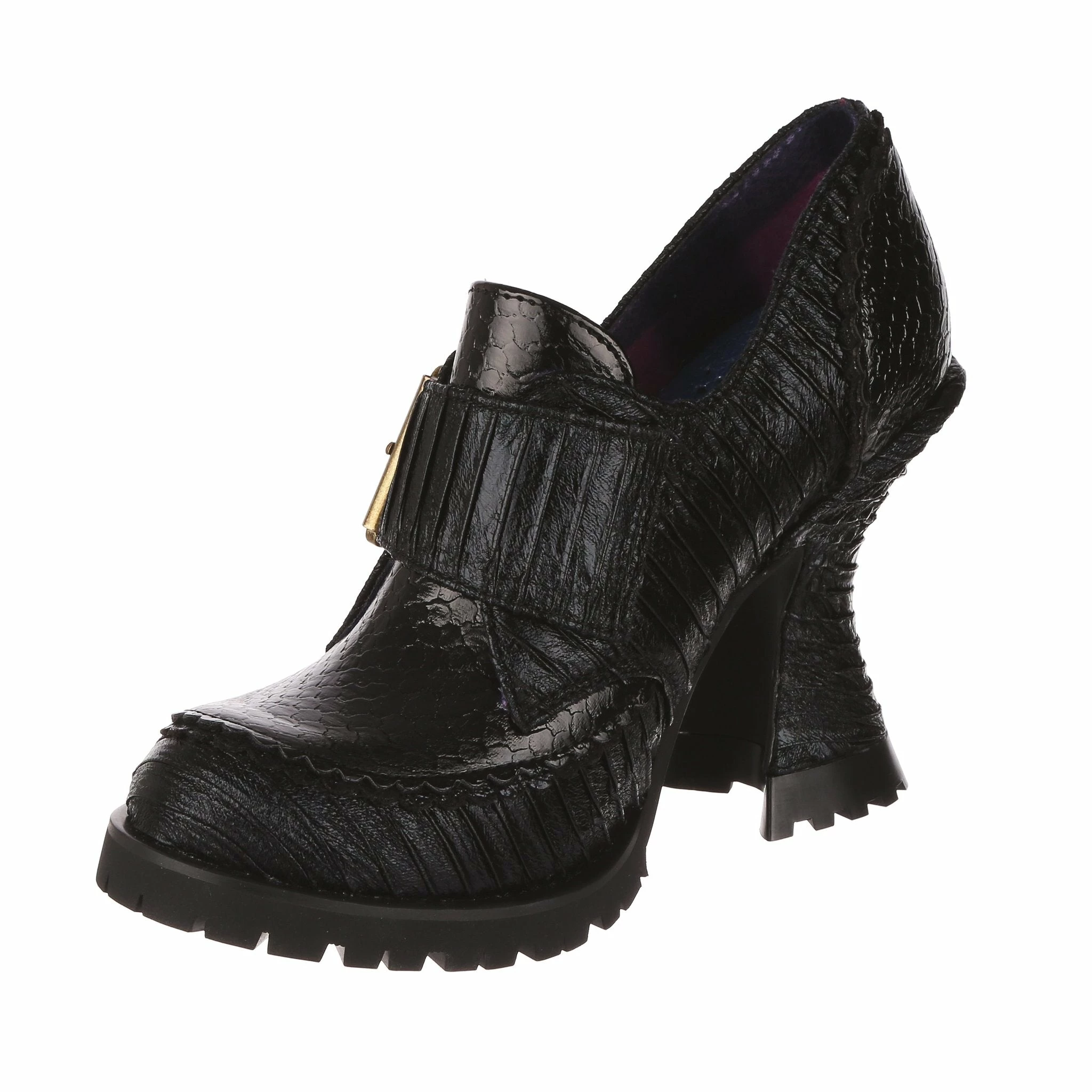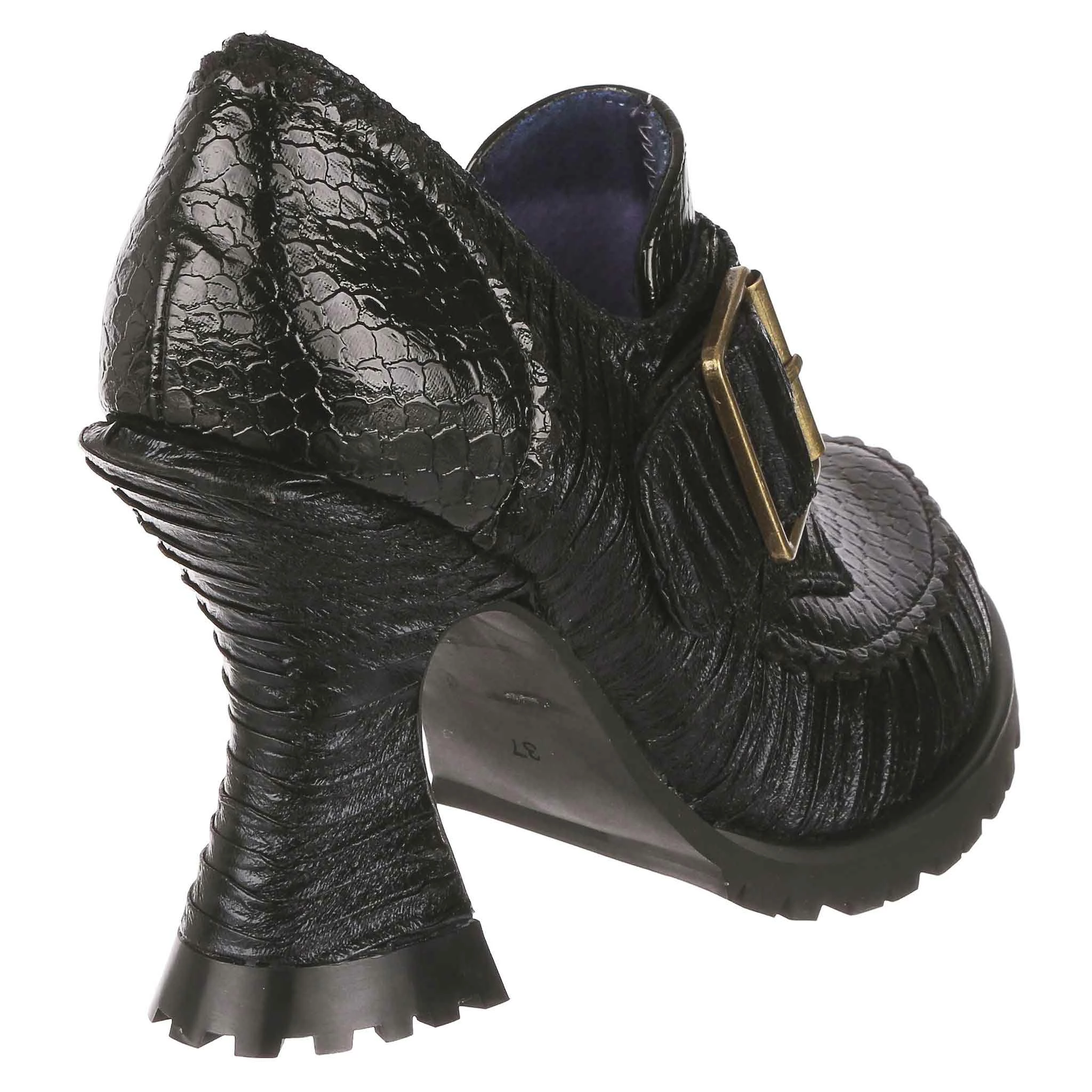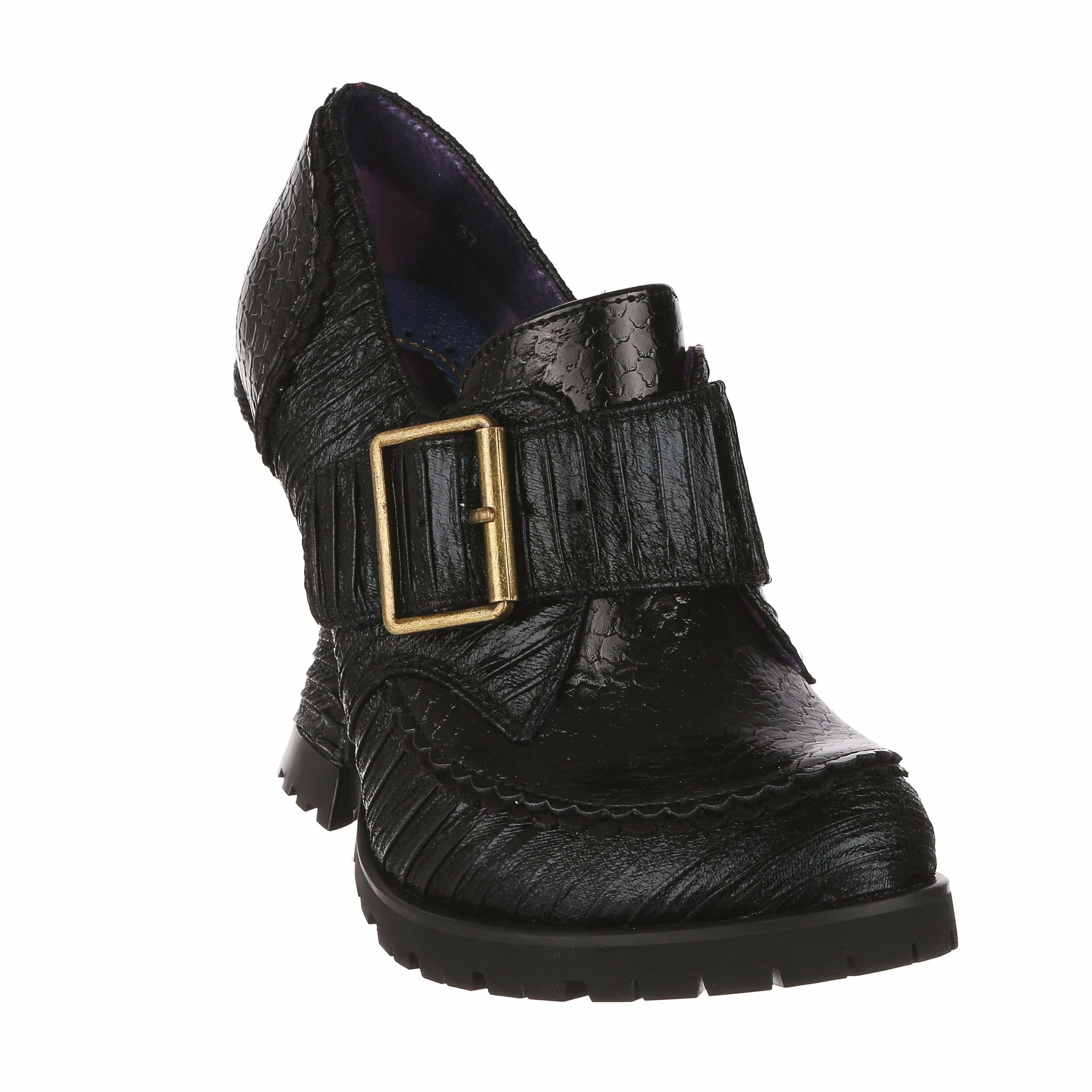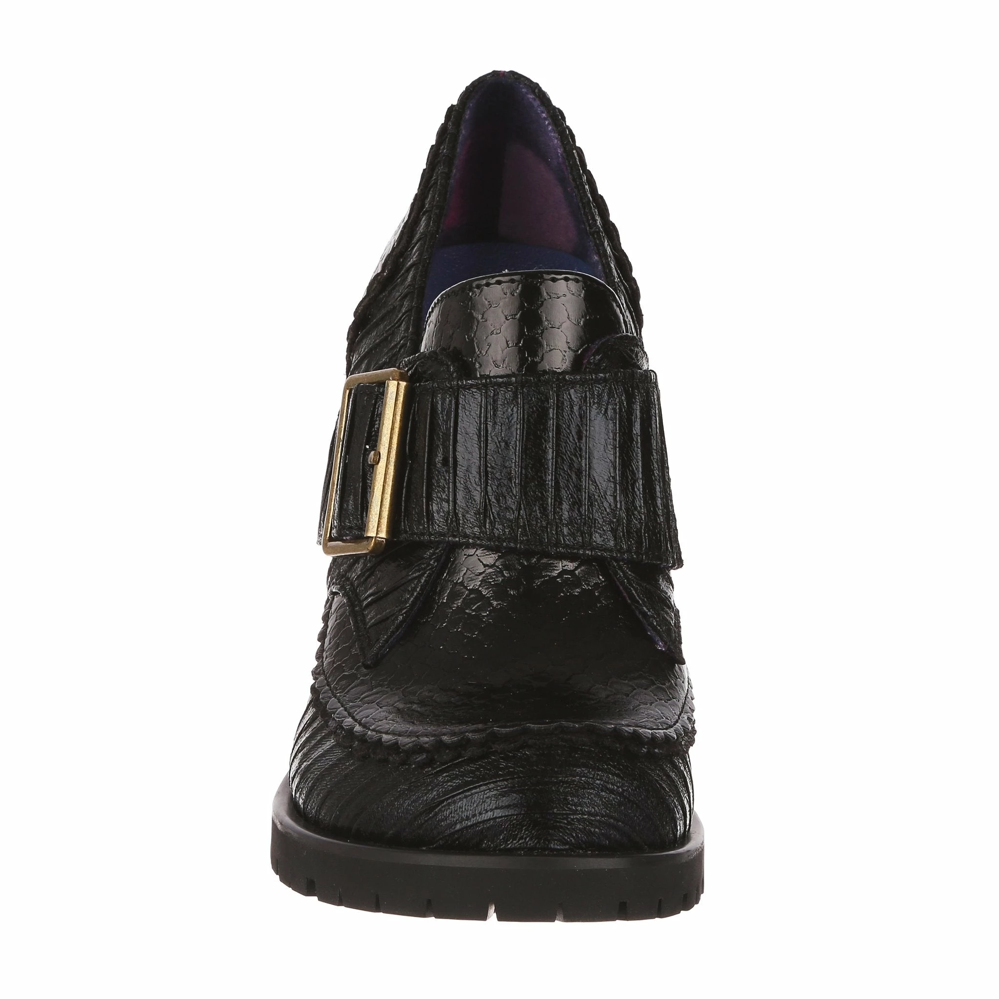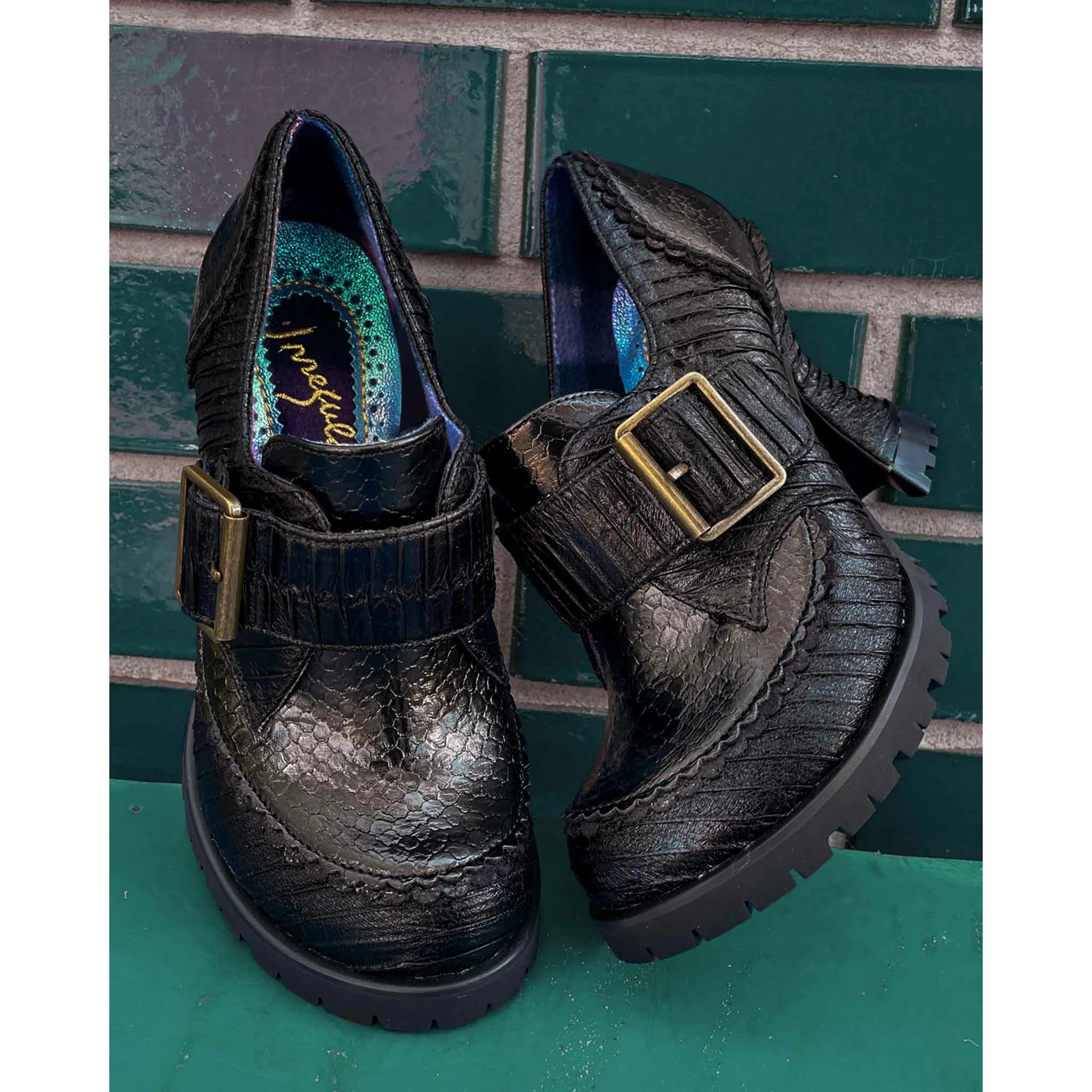 A statement pair of shoes for someone who loves to make a statement! These buckle-fastened beauties boast a stunning metallic black textured upper, which is paired with the curving high heel and finished off with the most chunky tread for a perfect final silhouette!