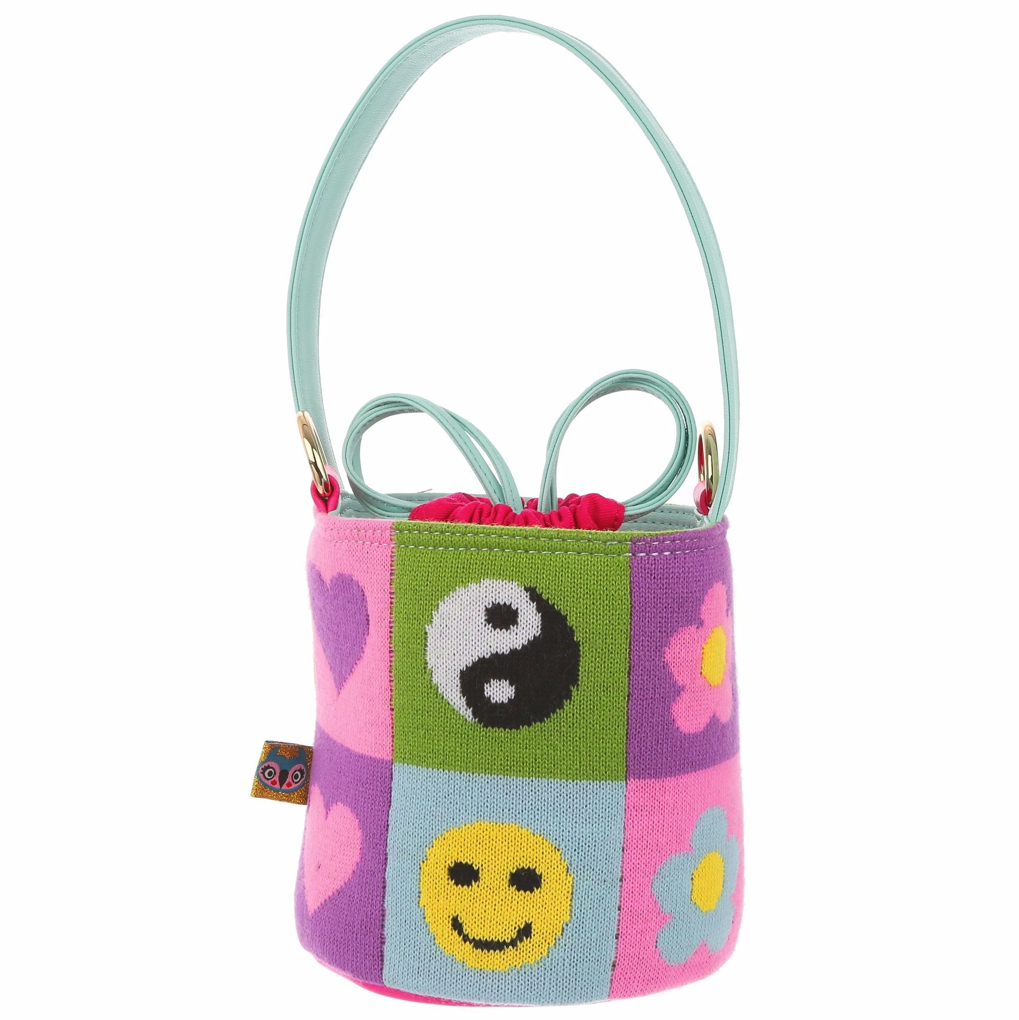 One for all the nineties fashion nostalgia lovers! Pastel patchwork bucket bag with a teal drawstring closure and matching handle that is surprisingly spacious for all your on the go essentials. Hit the street with this stylish and fun bag!