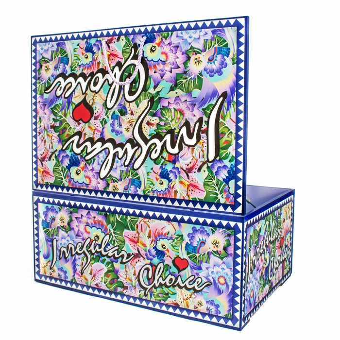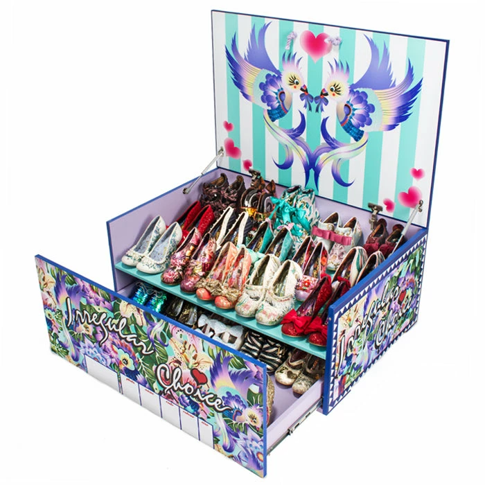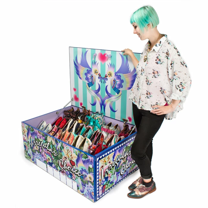 The perfect treasury for you to store your Irregular Choice shoes in style! Our made to order Tropical Storage Chest features our popular parakeet box design.